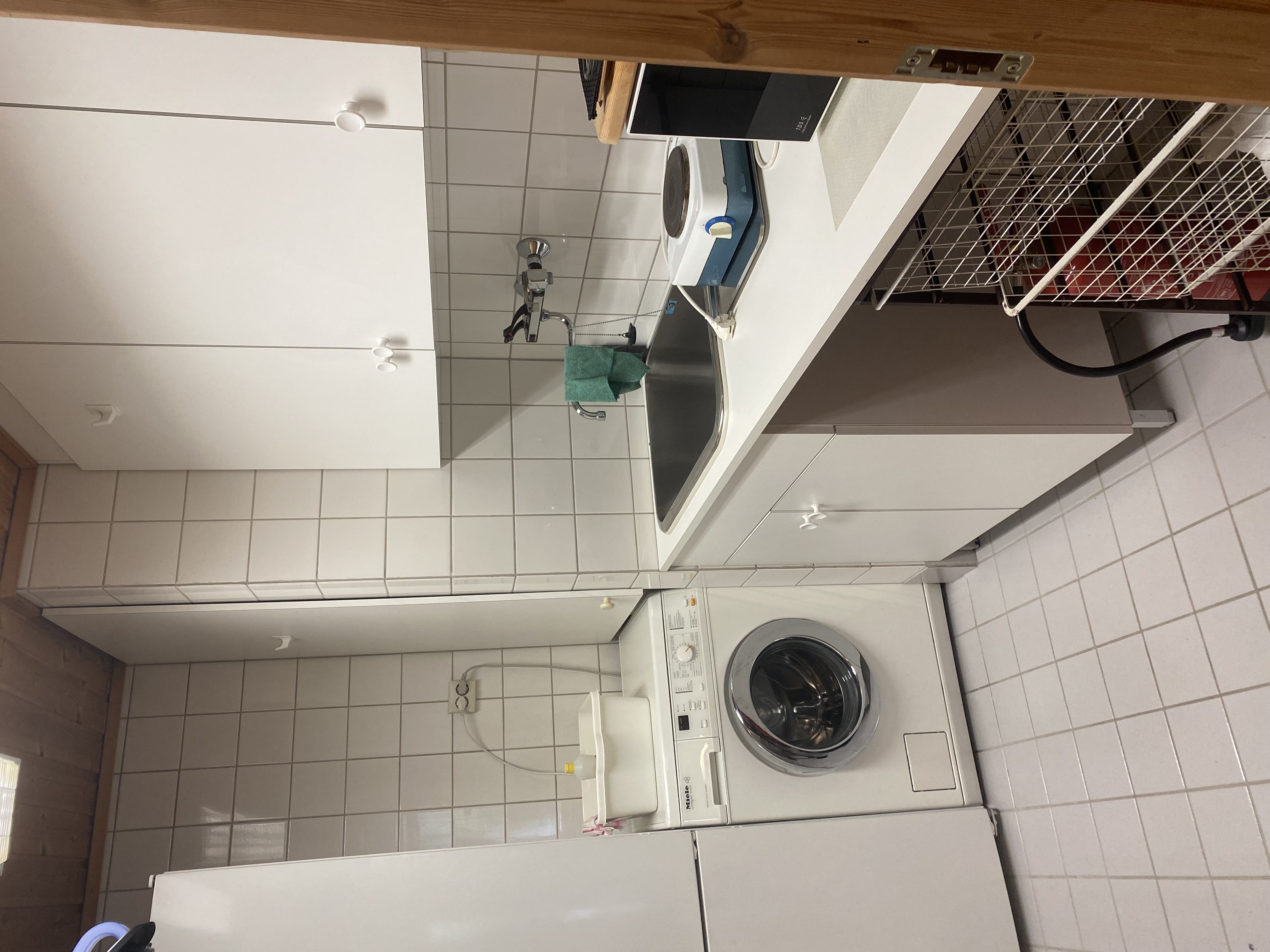 Det er ei vaskemaskin i kjellaren ellers er alt på eitt plan.