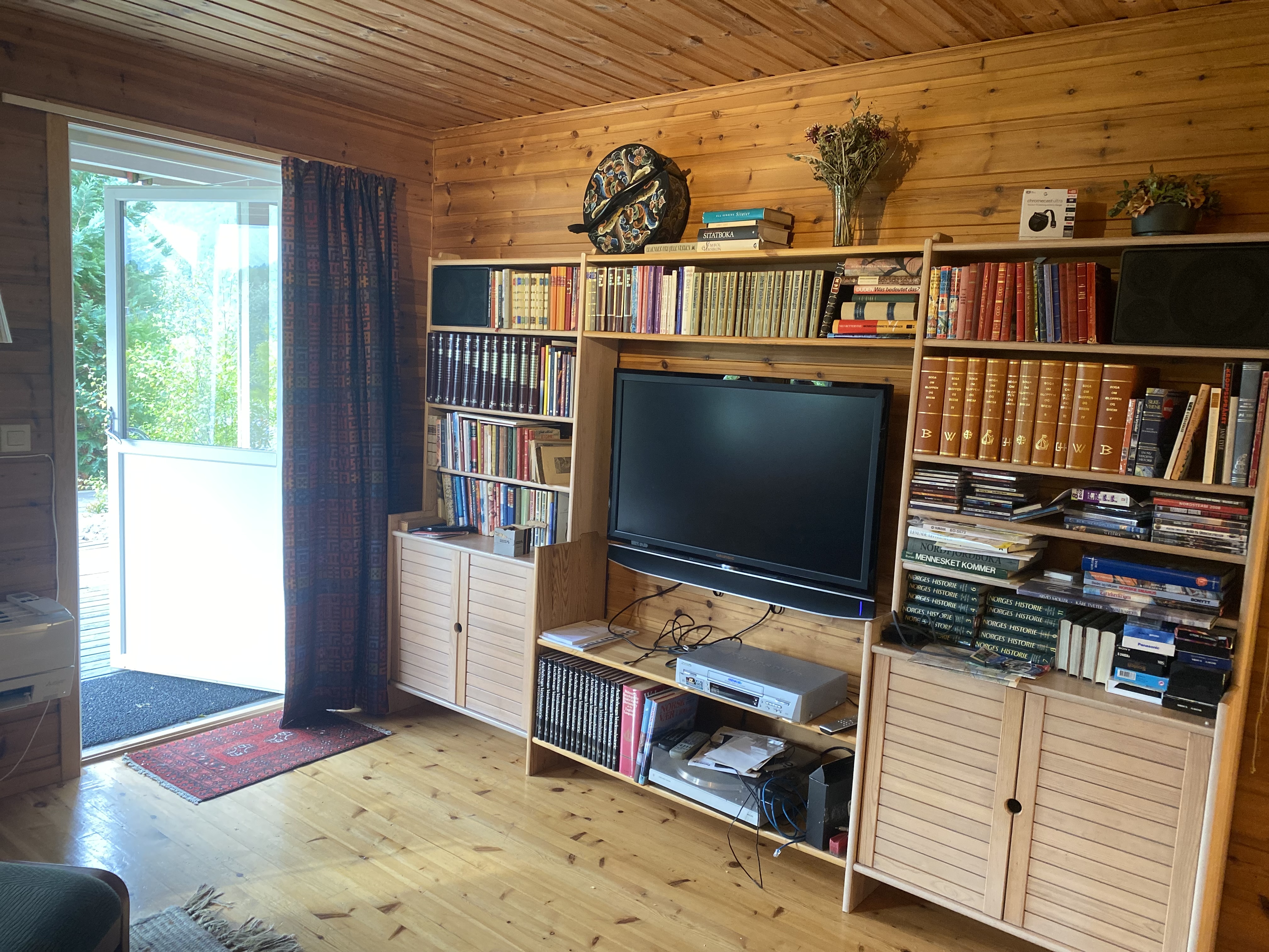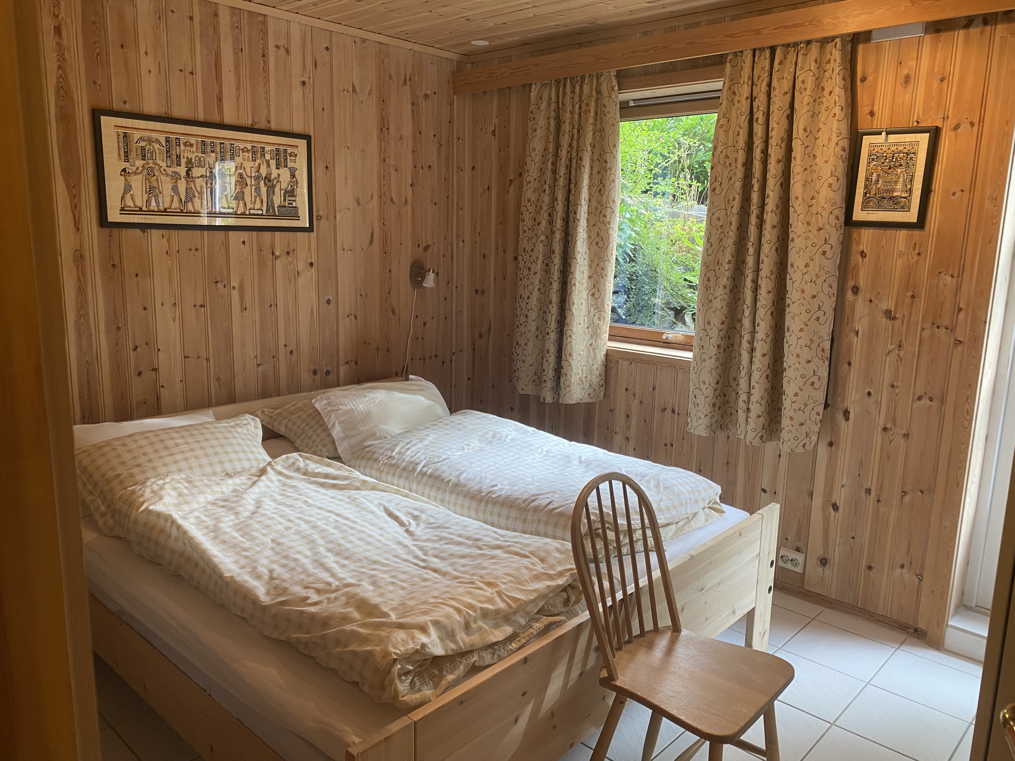 Stove med inngang utanfrå. Tekjøkken m kjøleskap, frys, mikrobølgeovn, kokeplate, kaffitraktar og vaskemaskin. Nødvendig bestikk, koppar, kar etc. Romsleg bad med dusj. (Badstove. Kan avtale særskilt om den skal brukast.)