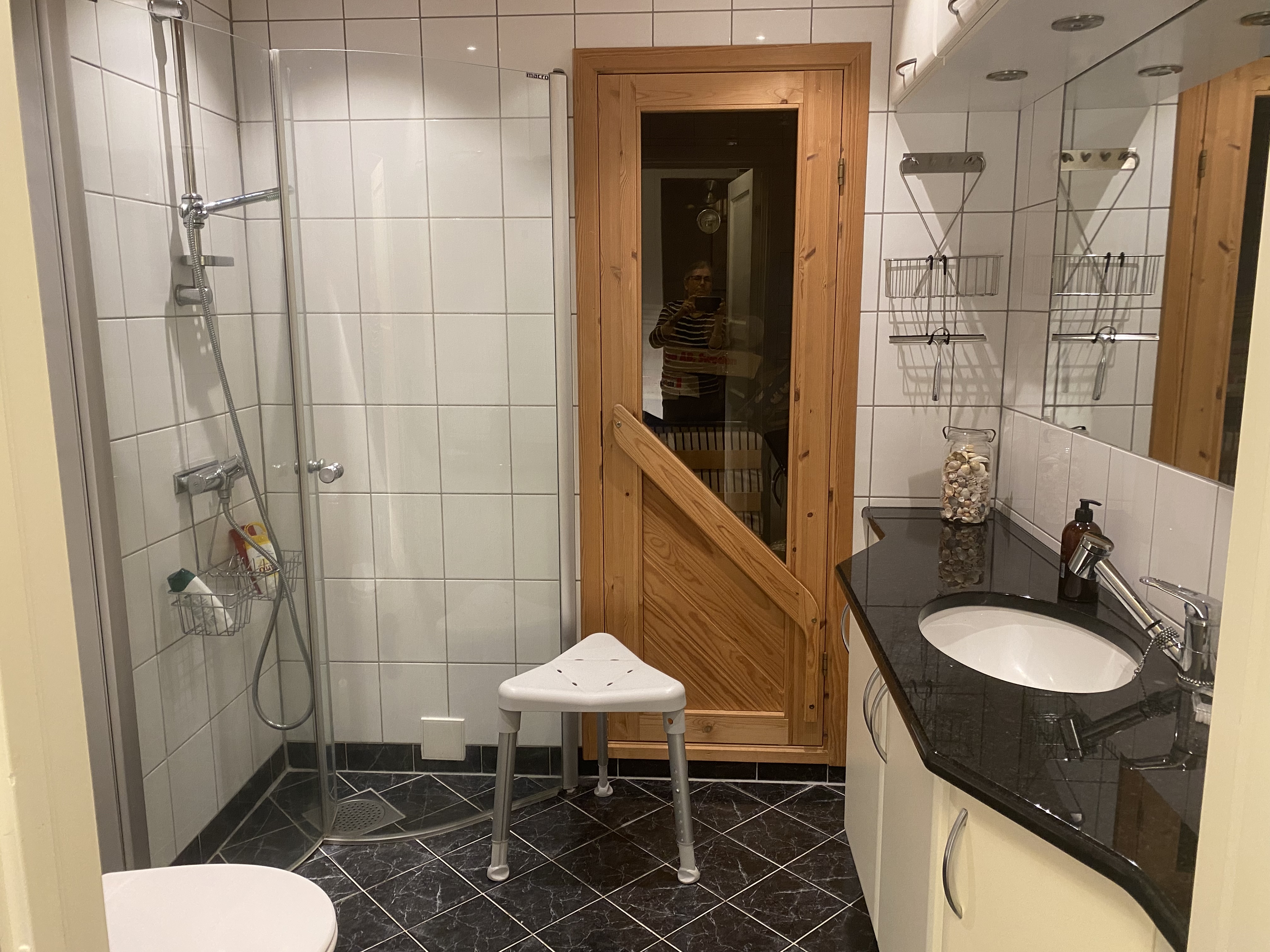 Bad, toalett (2 avskilte rom) i 2.etg. Vaskerom og ekstra dusj i 1. etasjen.